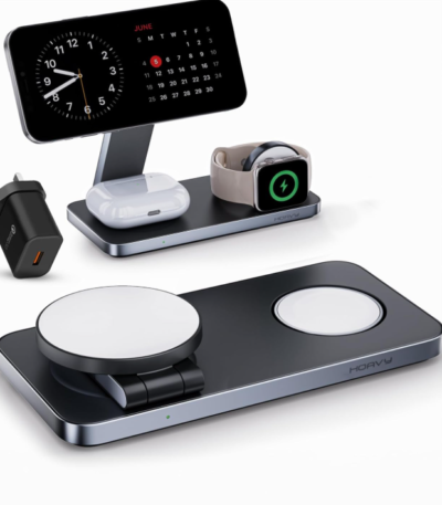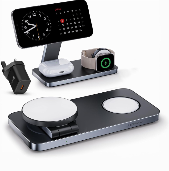 Magnetic Wireless Charger All in one, Apple Phone Magnetic Charger, Sleek Design, Foldable and travel friendly phone chager, Fast charging magnetic charger (Metallic Black)