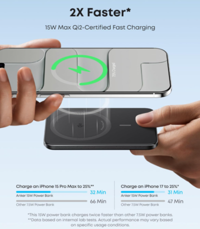 Anker Nano Power Bank, Ultra-Slim 5,000mAh Magnetic Battery Pack, Qi2 Certified 15W Max Ultra-Fast MagSafe-Compatible Portable Charger, PD 20W, Ergonomic Design, For iPhone 17/16/15/14/13 Only