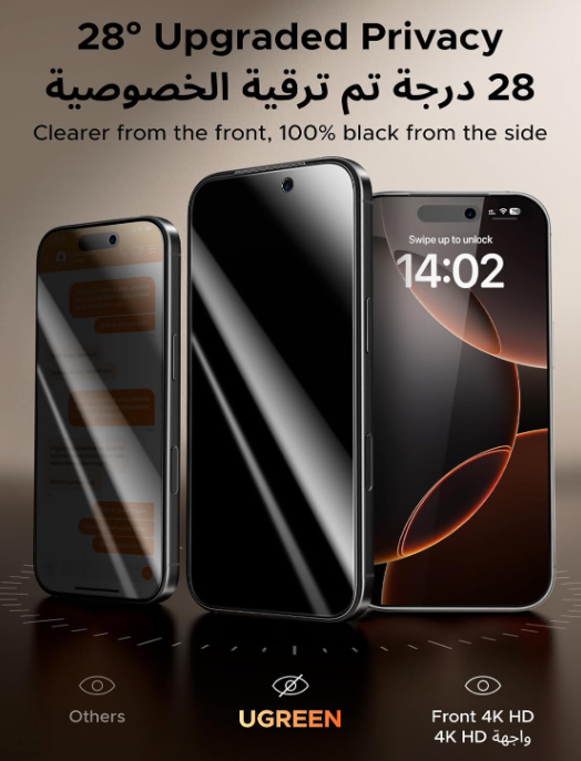 UGREEN for iPhone 17/16 Pro Screen Protector Privacy 6.3” 100% Privacy Protection Ultimate Drop Protection 1:1 Full Coverage Anti Spy Screen Protector 9H+ Tempered Glass Fit for Most Case 2 Pack