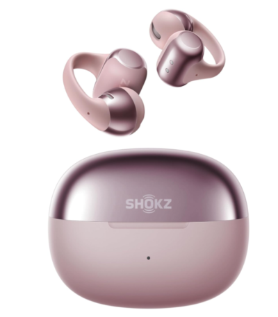 SHOKZ OpenDots ONE Open Ear Headphones, Premium Dolby Audio 6.5g Clip On Earbuds Bluetooth 5.4, Wireless Earphones with Mic, Fast Charging 40 hrs Playtime, IP54, with Cleaning Cloth,for Walking- Pink