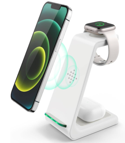 3 in 1 Wireless Charging Station, Fast Desk Charger Station for iPhone 17 16 15 14 13 12 Pro Max Plus, Charger Stand for Apple Watch 11 10 9 8 7 6 5 4 3 2 Ultra SE, Airpods 4 3 2 Pro (White)